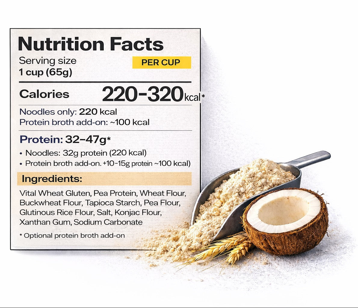 Each cup delivers 32g of protein from the noodles alone.